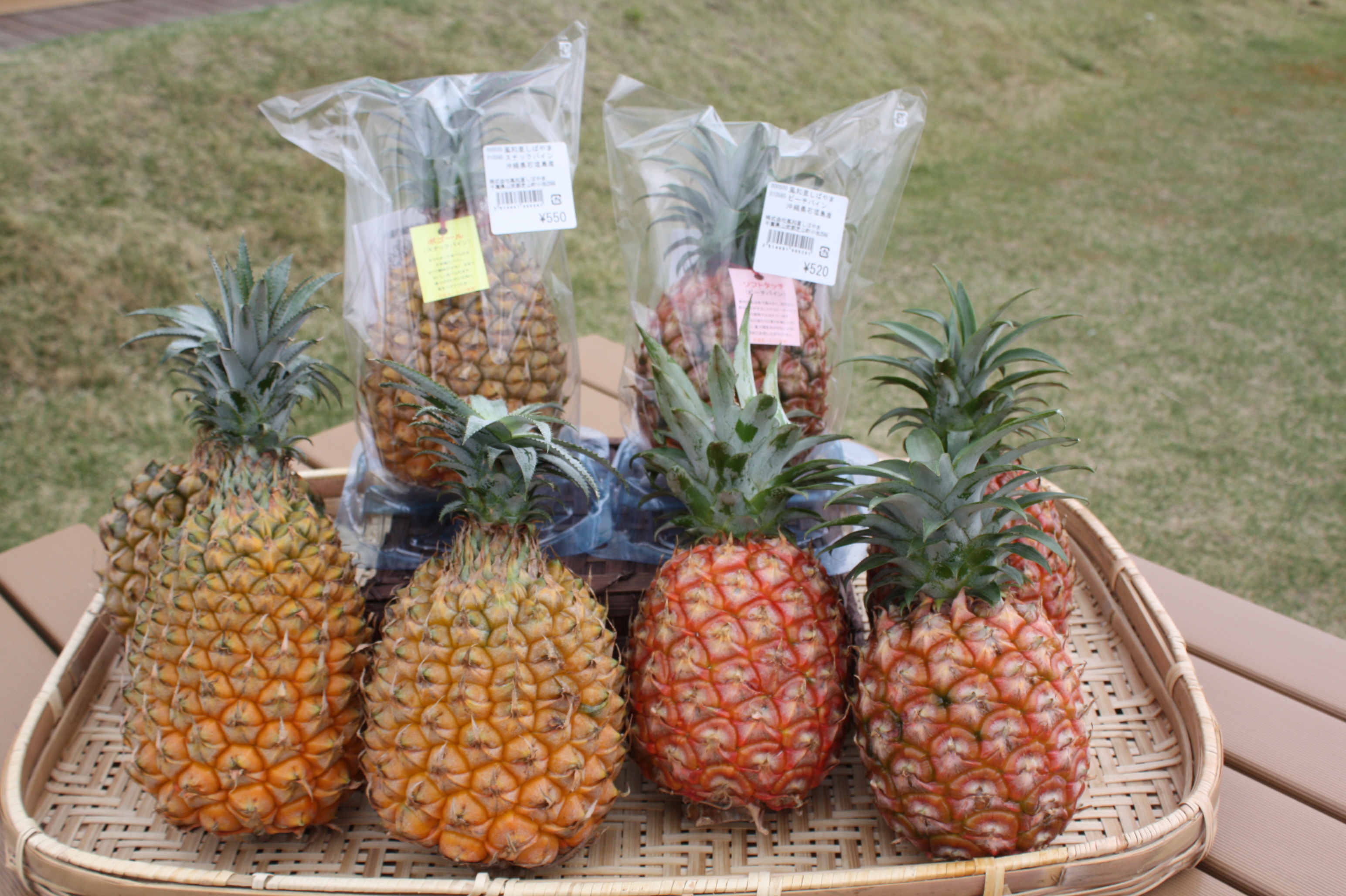 『ソフトタッチ(ピーチパイン)』、『ボゴール(スナックパイン)』、『島パイン(ハワイ種)』、『ジュリオスター』どれも食べ比べてみると違った個性がありますので、是非お気に入りのパイナップルを見つけてみてください
